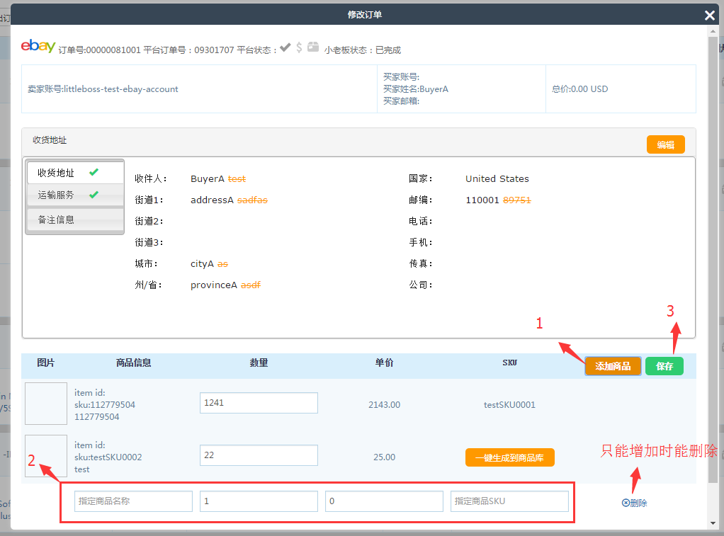 这里以ebay订单为例子,简单说明一下如何使用修改订单的功能: