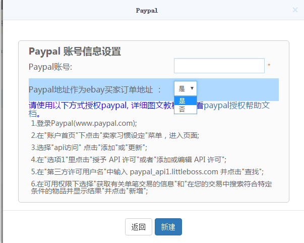 1.在paypal 授权页面如下图,开启 【paypal地址作为ebay买家订单地址】 选择 【是】此功能是为了ebay 纠纷时,保护卖家的功能,开启后, 新订单才会同步paypal 地址, 旧订单一律不同步paypal 地址