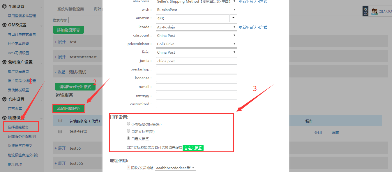 操作路径:设置-》物流设置-》选择运输服务-》自定义物流商-》添加物流账号-》EXCEL对接