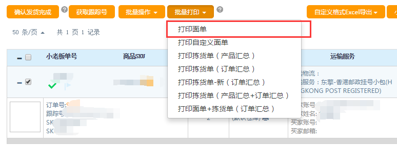 编辑东擎物流下的运输服务,打印设置选择"自定义标签(新)",下拉选择刚才新增的自定义模板(不需要打印报关单的只需要下拉选择物流面单),提交后就可以在物流界面打印出来。
